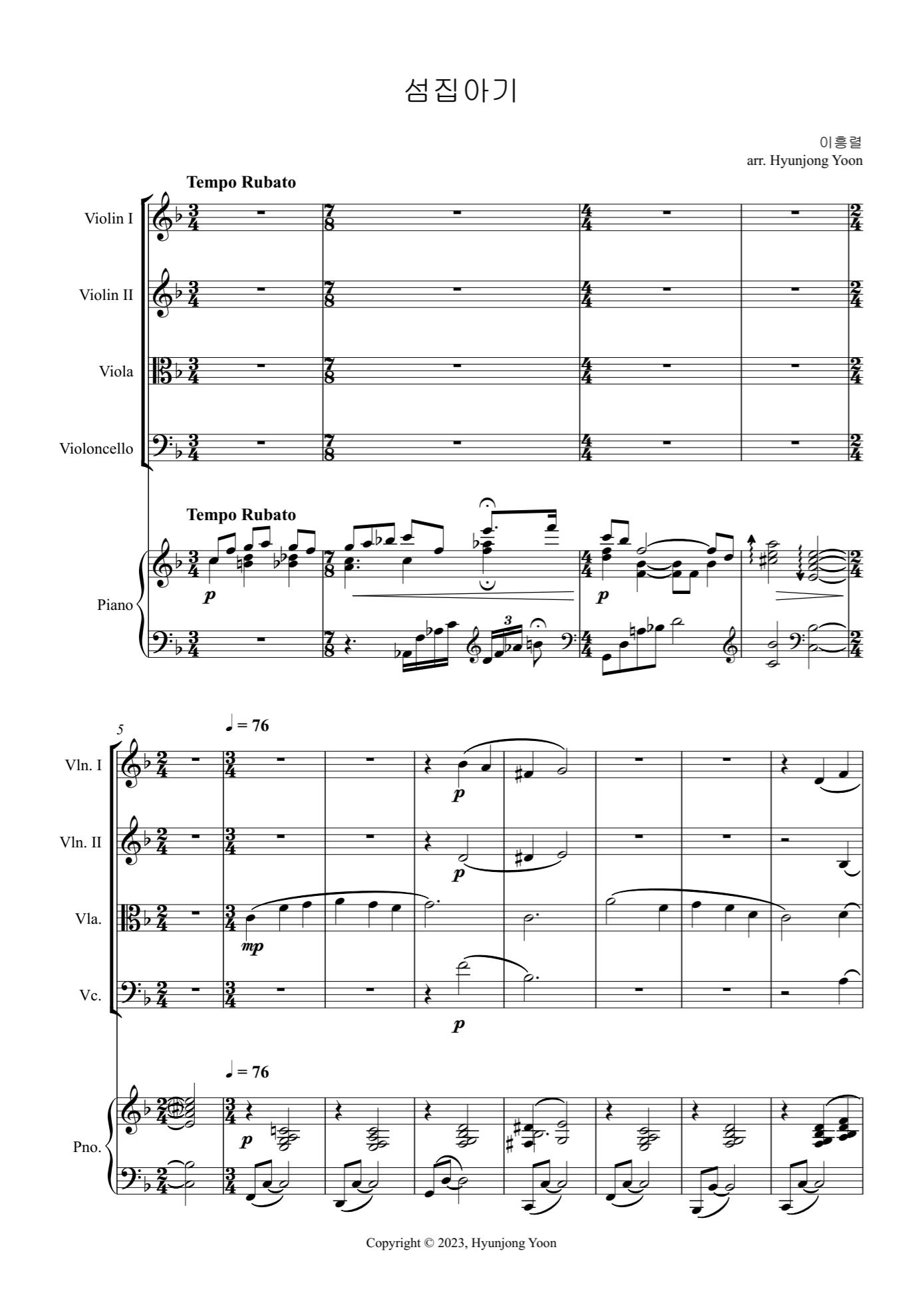 Full Score, Violin 1, Violin 2, Viola, Violoncello, Piano